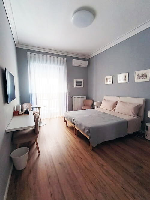 Camera raccolta, confortevole, luminosa e arredata in modo semplice e lineare con colori che trasmettono tranquillità. Fornita di letto matrimoniale, bagno in camera, cabina doccia e balcone. Questa soluzione è l’ideale per le persone in viaggio d’affari o single che per lavoro o per piacere vogliono pernottare a Catania.
