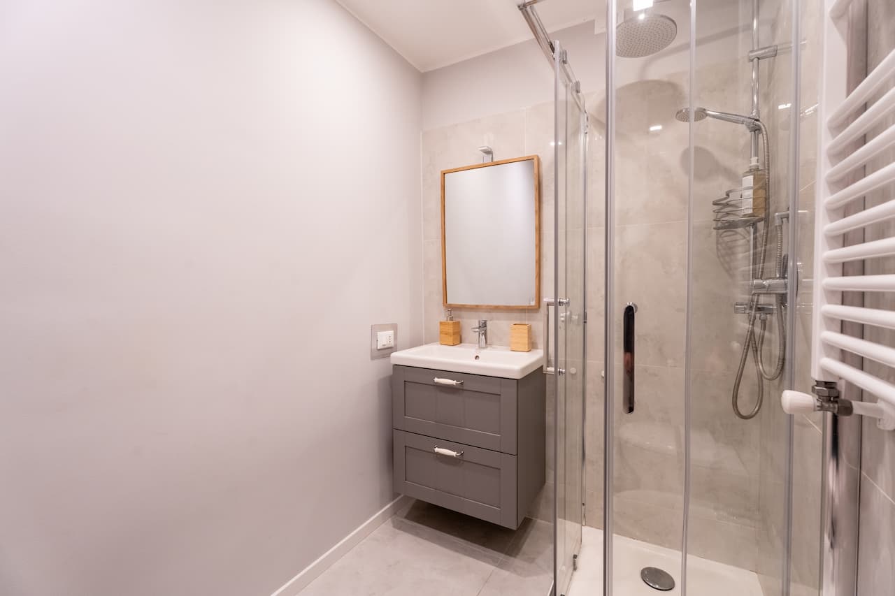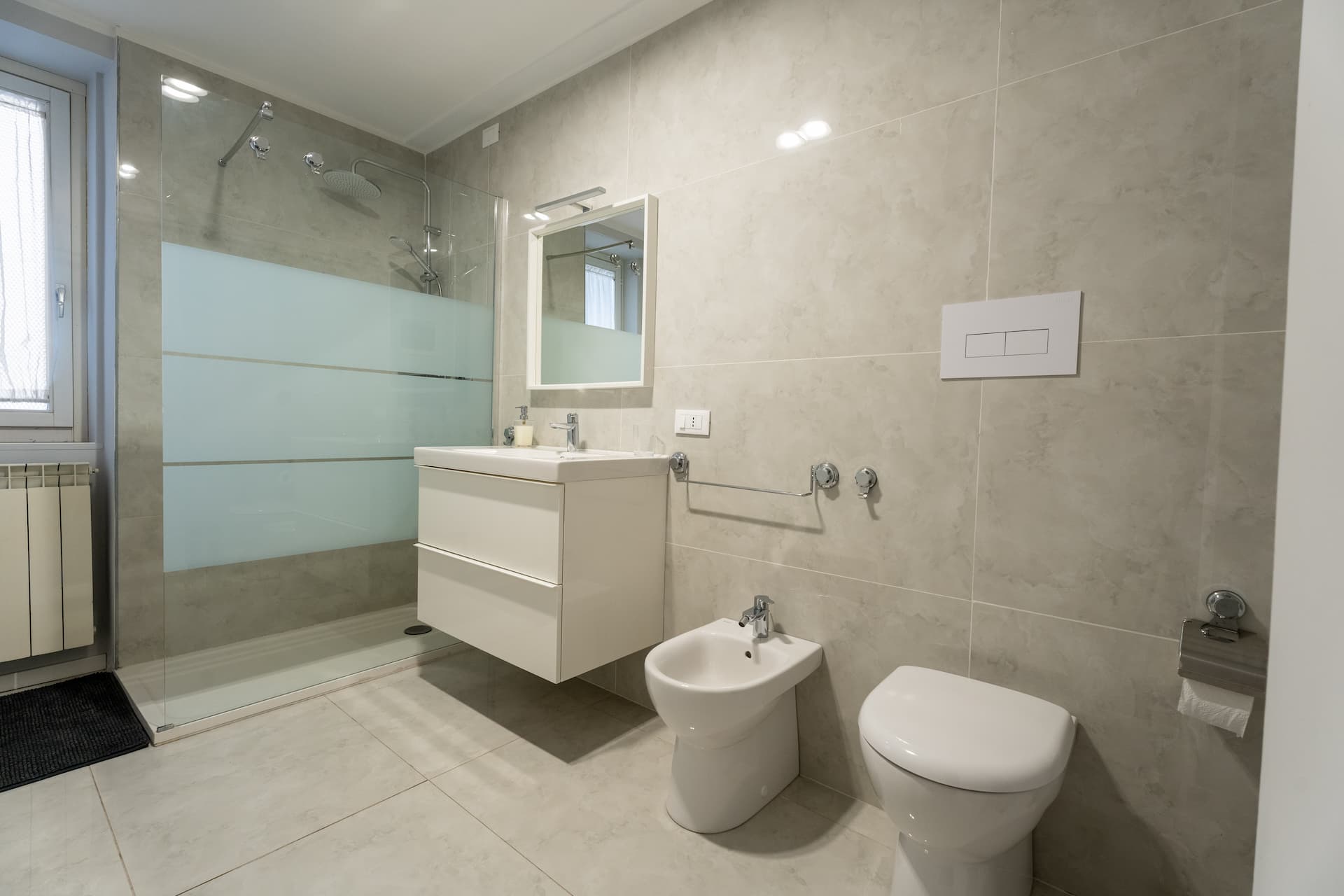 Bagno in camera o ad uso esclusivo con fon e doccia a pioggia, set asciugamani, e doccia shampoo gel;