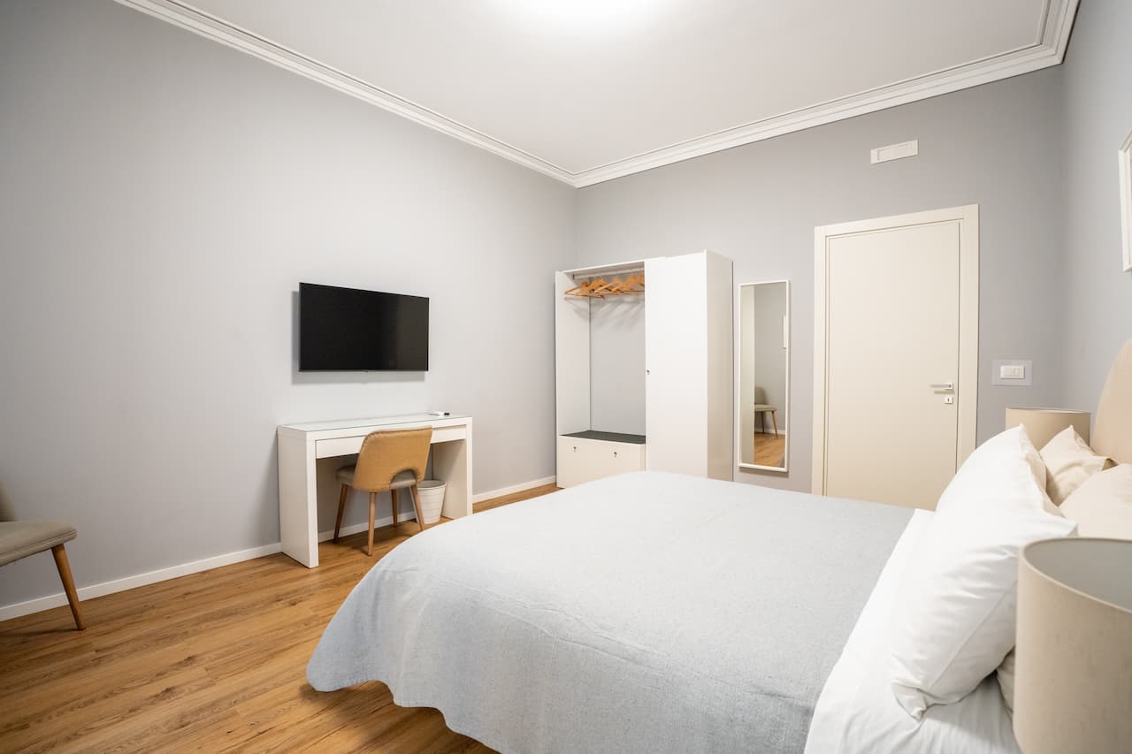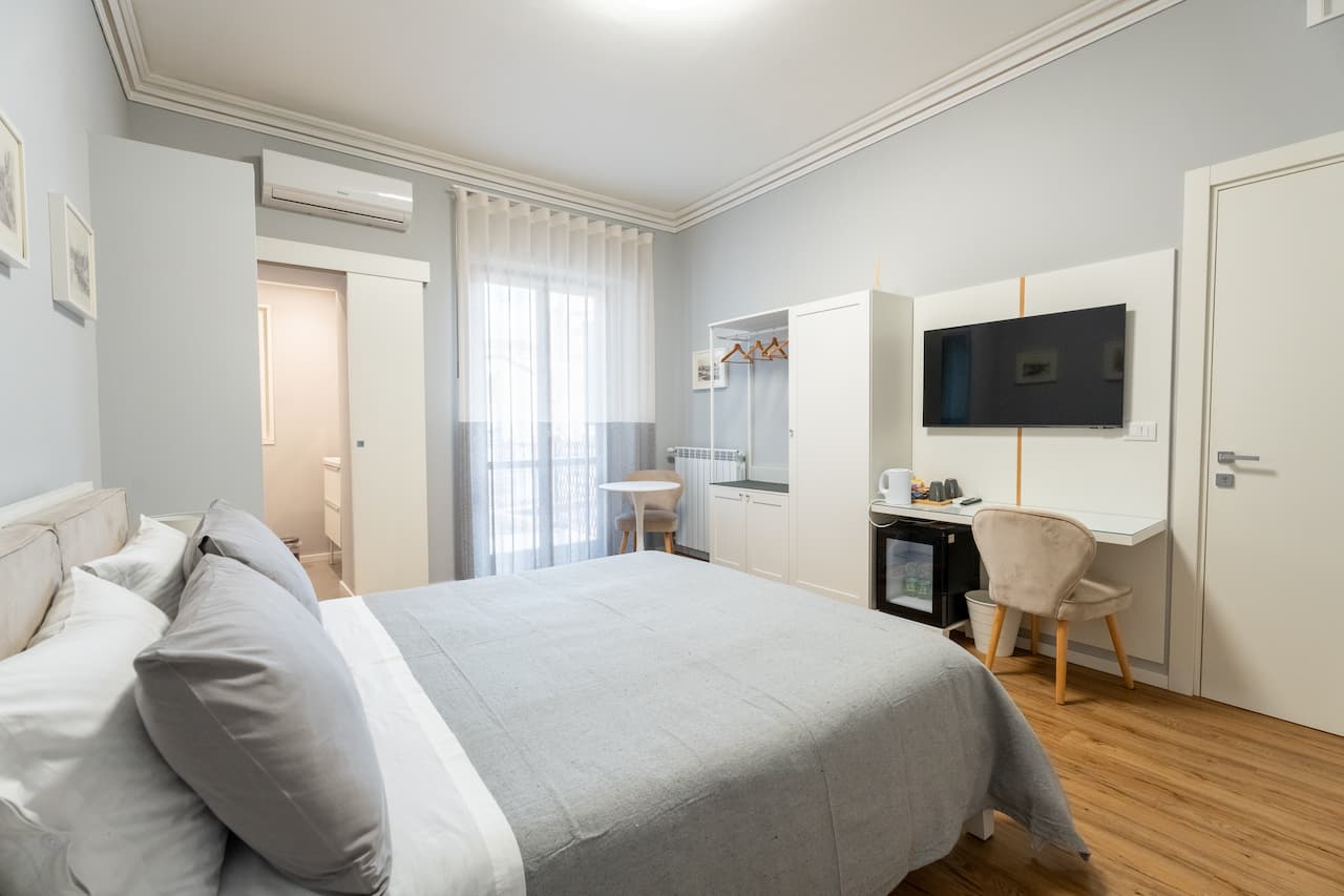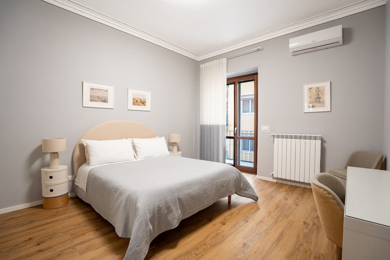 Camera raccolta, confortevole, luminosa e arredata in modo semplice e lineare con colori che trasmettono tranquillità. Fornita di letto matrimoniale, bagno in camera, cabina doccia e balcone. Questa soluzione è l’ideale per le persone in viaggio d’affari o single che per lavoro o per piacere vogliono pernottare a Catania.