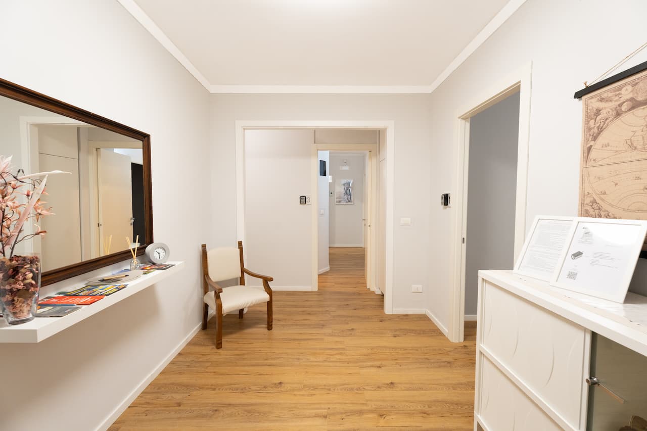 Corridoio, due camere, un bagno, cucina abitabile e ripostiglio.